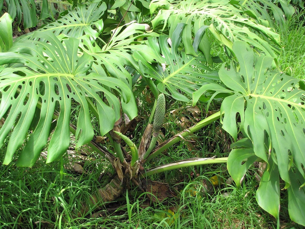 Monstera deliciosa foliage and fruit.